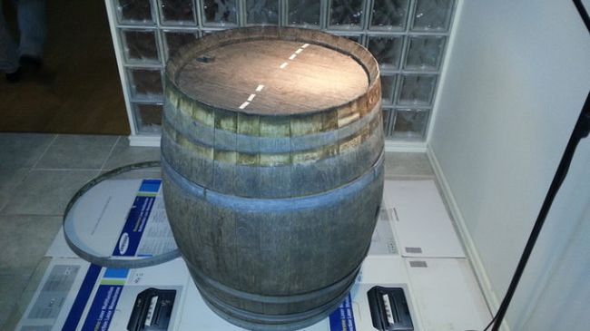 Przy pomocy kleju do drewna zespolił ze sobą deski, ale tylko tyle, żeby otrzymać połowę beczki.