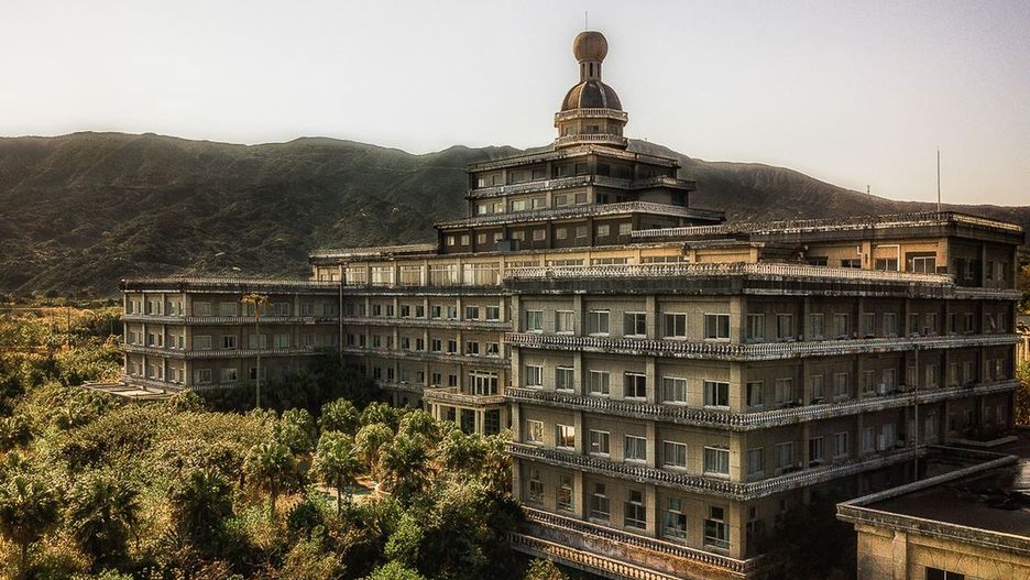 Ogromny, ponury budynek jest położony na odległej wyspie wulkanicznej, prawie 300 km od Tokio. Inwestycja okazała się nierentowna i w 2006 roku hotel zamknięto. Od tej pory niszczeje.
