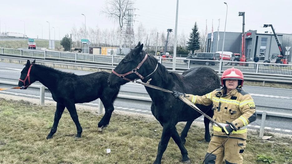 Źrebak sam wydostał się z przyczepy, natomiast klaczy musieliśmy pomóc, podnieść i ewakuować z przyczepy. Zwierzęta nie wymagały pomocy medycznej. Są pod opieką właściciela - przekazał strażak.