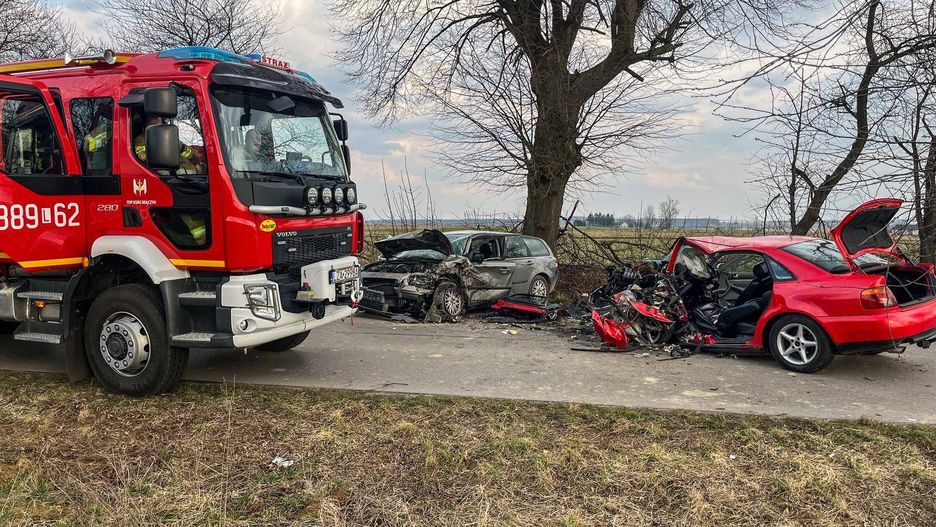 Do wypadku doszło we wtorkowe popołudnie na drodze powiatowej prowadzącej na trasie Zamość-Hrubieszów. Prowadzący audi 22-latek stracił panowanie nad samochodem, zjechał na przeciwległy pas i na łuku czołowo zderzył się z nadjeżdżającym z naprzeciwka volvo.