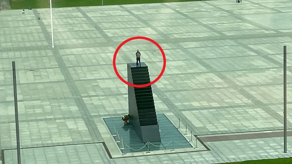 Zamaskowany mężczyzna miał ze sobą plecak, pomiędzy nogami trzymał torbę z nieznaną zawartością, a w ręku — przedmiot przypominający zapalnik. Ze względów bezpieczeństwa służby odgrodziły plac oraz tereny przyległe. Mimo to media społecznościowe szybko obiegły zdjęcia i nagrania z miejsca zdarzenia.