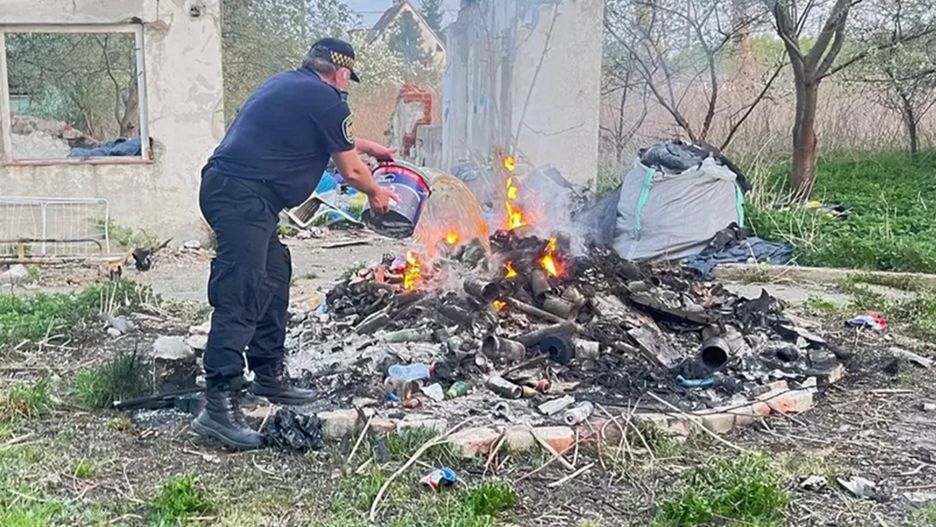 Na miejscu okazało się, że nieruchomość jest niezamieszkana, a na środku działki, w pobliżu zniszczonego budynku, pali się spore ognisko, w którym spalane są różnego rodzaju odpady komunalne. Niestety, w chwili przyjazdu mundurowi nie zastali nikogo, kto mógłby odpowiadać za jego rozpalenie.