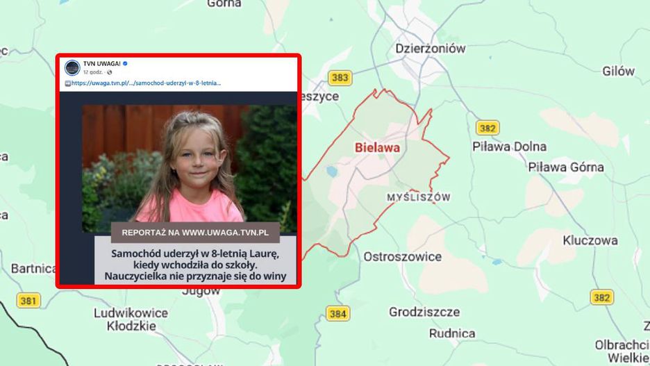 Kluczowym elementem sprawy jest układ terenu szkoły w Bielawie (woj. dolnośląskie). Główne dojście uczniów krzyżowało się z ruchem pojazdów kadry. Ojciec dziewczynki relacjonuje, że Laura potknęła się, a kierująca samochodem wjechała na parking, nie zatrzymując się, gdy dziecko próbowało się podnieść.