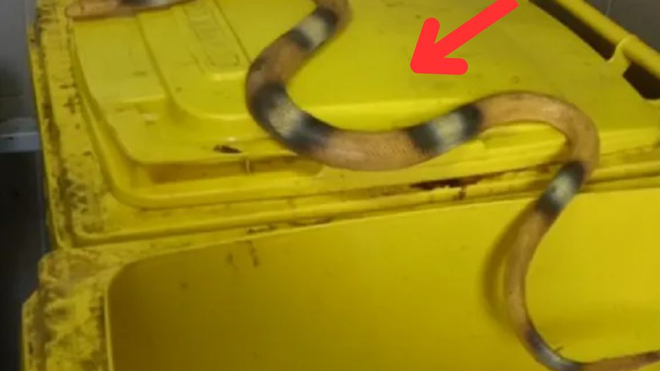 "Wąż" został zaobserwowany, kiedy miał się wić po klapie jednego z pojemników na odpady. Jak poinformowali strażnicy - bez problemu został ujarzmiony. Nic dziwnego - okazało się, że to wcale nie był prawdziwy gad.