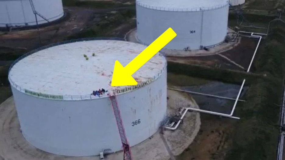 Jak podaje Metro UK, aktywiści nielegalnie wspięli się na mierzące około 50 metrów silosy naftowe. Rozwiesili na nich banery z hasłem: "No future in fossil fuels" (ang. paliwa kopalne nie mają przyszłości) i "climate emergency" (ang. alarm klimatyczny) zwracając uwagę na niszczący wpływ takich źródeł energii na środowisko.