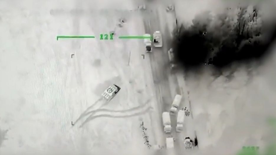 Czarno-biały obraz z zielonym celownikiem przedstawiał przemieszczające się wozy bojowe sił okupanta. Kamera zamontowana była na bezzałogowym Bayraktarze. To właśnie z niego zdalnie została wysłana rakieta, która doszczętnie zniszczyły pojazdy Federacji Rosyjskiej. To kolejny bardzo potężny cios zadany przez siły zbrojne Ukrainy.