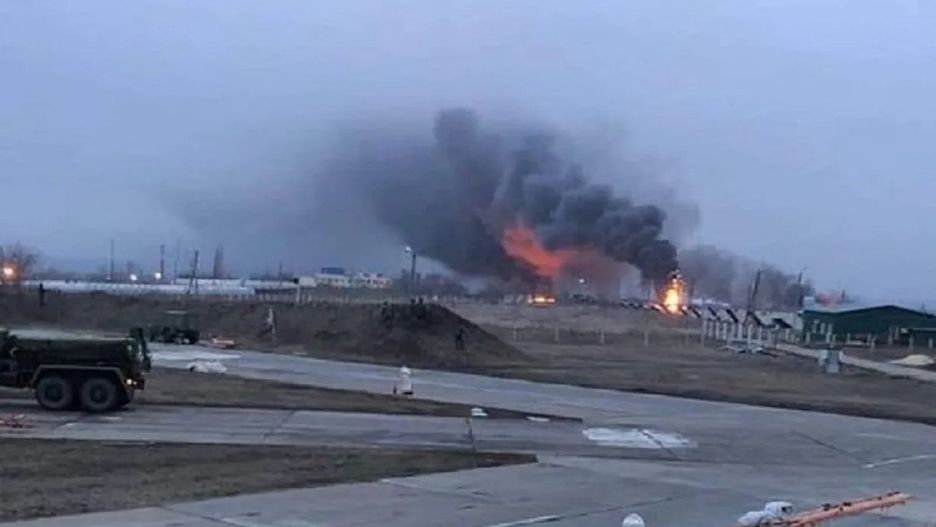 Atak na rosyjskie lotnisko. Widać szalejący pożar