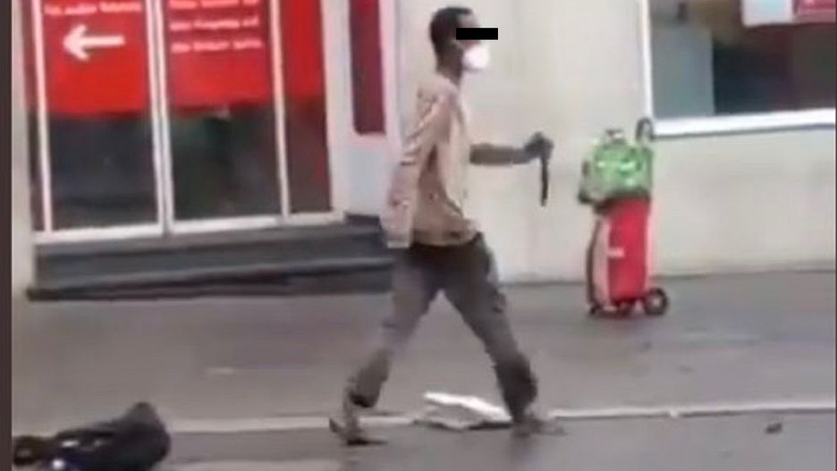 Na nagraniach widać też, jak przechodnie próbują powstrzymać napastnika. Słychać krzyki, w pewnym momencie świadek zdarzenia krzyczy: "On właśnie dźgnął kobietę". W napastnika rzucano krzesła, a jeden z mieszkańców próbuje zatrzymać podejrzanego nożownika kijem.