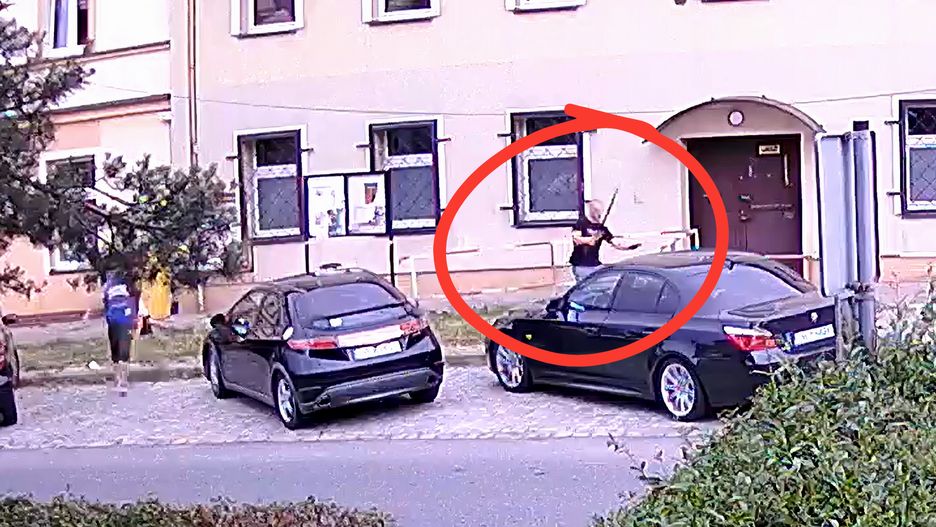 Na nagrania z monitoringu widać jak napastnik atakuje mieczem ofiarę, która upada na chodnik i mocno krwawi. W materiale widać jeszcze jednego mężczyznę, który najprawdopodobniej ubezpieczał napastnika. Po ataku obaj uciekli w tym samym kierunku.