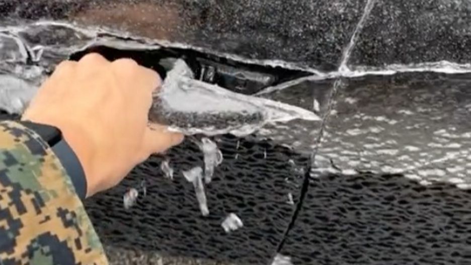 O bezwzględności zjawiska zamarzającego deszczu przekonał się pewien Amerykanin. Gdy udał się na parking do swojego samochodu, nie uwierzył własnym oczom. Pojazd był w pełni pokryty warstwą lodu. Kierowca postanowił nagrać telefonem moment otwarcia zamarzniętego auta. Kiedy mocno pociągnął za klamkę, lód zaczął odpadać płatami zarówno od drzwi, jak i ich innych elementów.