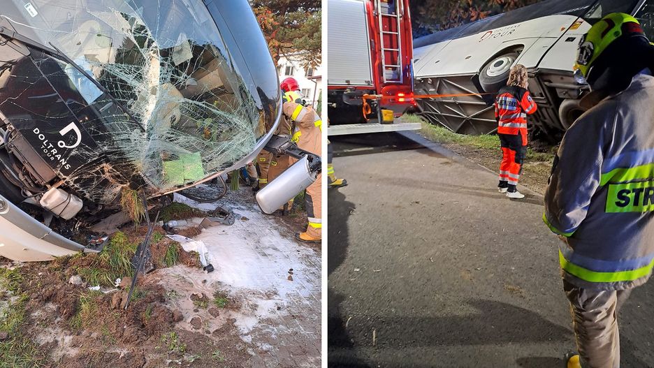 Autokar uległ awarii i wpadł do rowu. Wśród rannych są dzieci