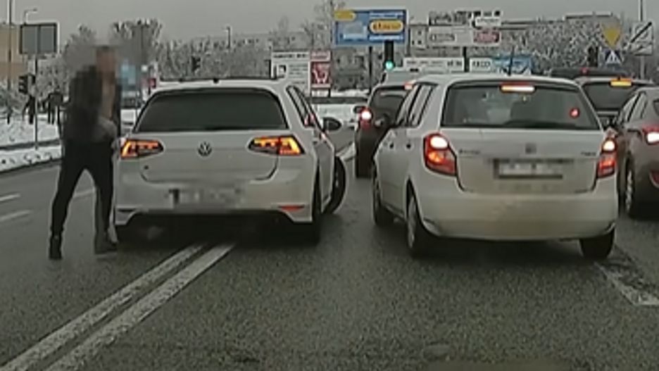 Manewr wyprzedzania z kolei nie spodobał się kierowcy volkswagena. Mężczyzna ominął skodę, a następnie wyszedł na ulicę. Na nagraniu widać, jak podszedł do białego auta i otworzył w nim drzwi. Pomiędzy nim a kierującym w skodzie doszło do bardzo ostrej wymiany zdań, która o mały włos nie zakończyła się rękoczynami. Autorowi nagrania podczas oglądania sytuacji towarzyszyły ogromne emocje, co było słychać w jego głosie.