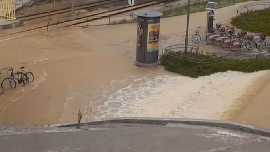 W mediach społecznościowych pojawiają się liczne filmiki, na których widać, jak woda niczym rwąca rzeka wdziera się na przystanek tramwajowy i częściowo zalewa podłogę w jednym z przejeżdżających tramwajów.
