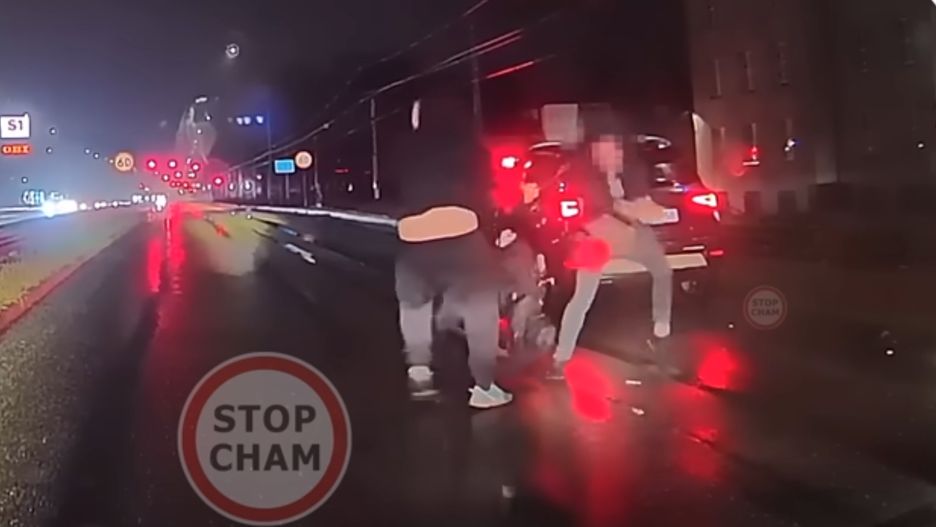Nie wiadomo, co było przyczyna zamieszania. Ale kierowca lawety jak i osobówki mieli sobie sporo do wyjaśniania. Doszło do rękoczynów - czytamy w opisie materiału udostępnionego w serwisie YouTube przez "Stop Cham".