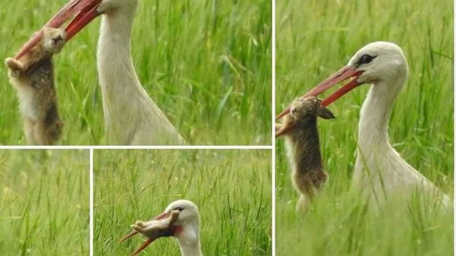 Spacerujący po łące bocian, dostrzegając małego zajączka, łapie go dziobem i połyka w całości. Kiedy kończy ucztę, krwawy ślad spływa mu po dziobie. Zdjęcia pokazujące brutalność, a zarazem nieprzewidywalność natury zyskały tysiące udostępnień. Inna sprawa, że część internautów przeciera oczy ze zdumienia. Przecież utarło się, że podstawą diety bociana są żaby.