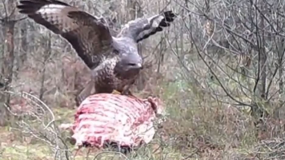 Niesamowite nagranie pojawiło się na profilu Fotopułapki – Trail Cameras na Facebooku. Widać na nim, jak myszołów próbuje pożywić się truchłem dzika. Niestety nie jest mu to dane – ptak zostaje skutecznie odstraszony przez szybką sarnę. Wideo obejrzysz poniżej.