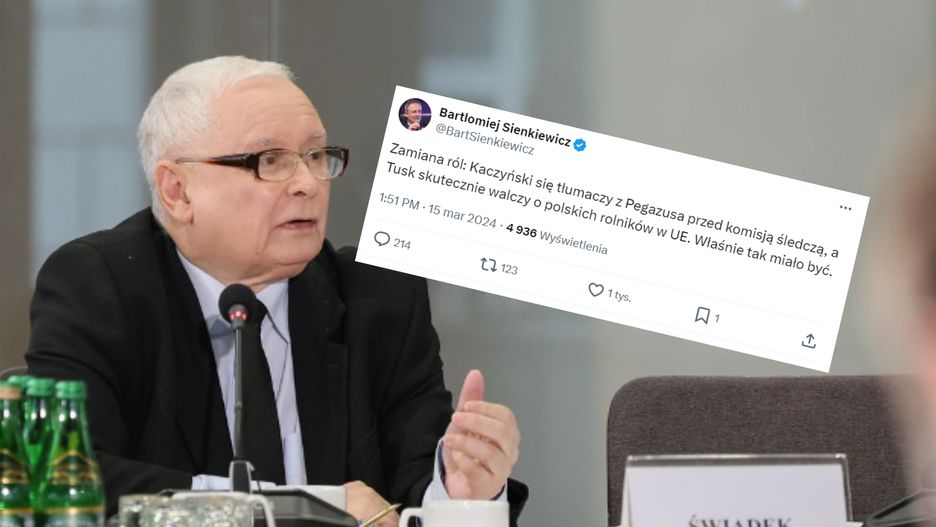 "Zamiana ról: Kaczyński się tłumaczy z Pegazusa przed komisją śledczą, a Tusk skutecznie walczy o polskich rolników w UE. Właśnie tak miało być" - podsumował Bartłomiej Sienkiewicz minister kultury i dziedzictwa narodowego.