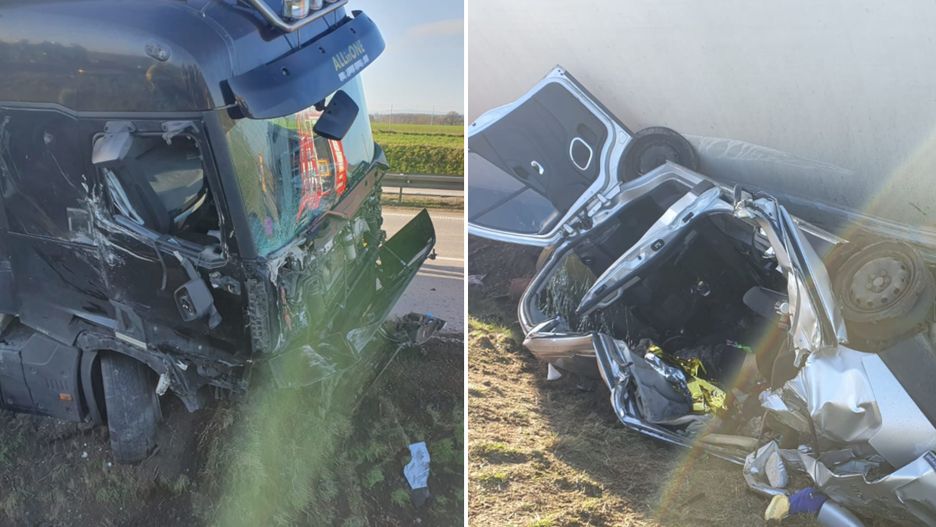 W wyniku zderzenia ciężarówki z busem, przewożącym kilkoro pasażerów, doszło do tragicznego wypadku, w którym bus został przygnieciony przez ciężarówkę.