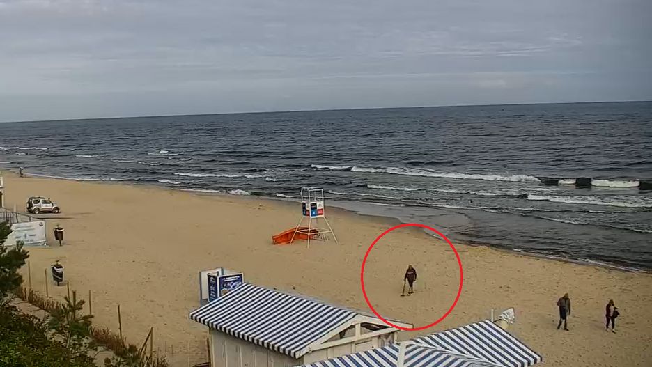 Była 8:20. Ujęcie z Krynicy. Pojawił się na plaży