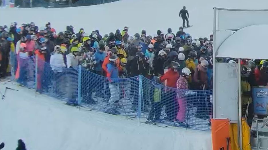 Ten beskidzki stok cieszy się niemałą popularnością, o czym świadczą choćby niedzielne ujęcia z portalu webcamera.pl. O godz. 13:14 dostrzegliśmy tłumy chętnych do skorzystania ze stoku.