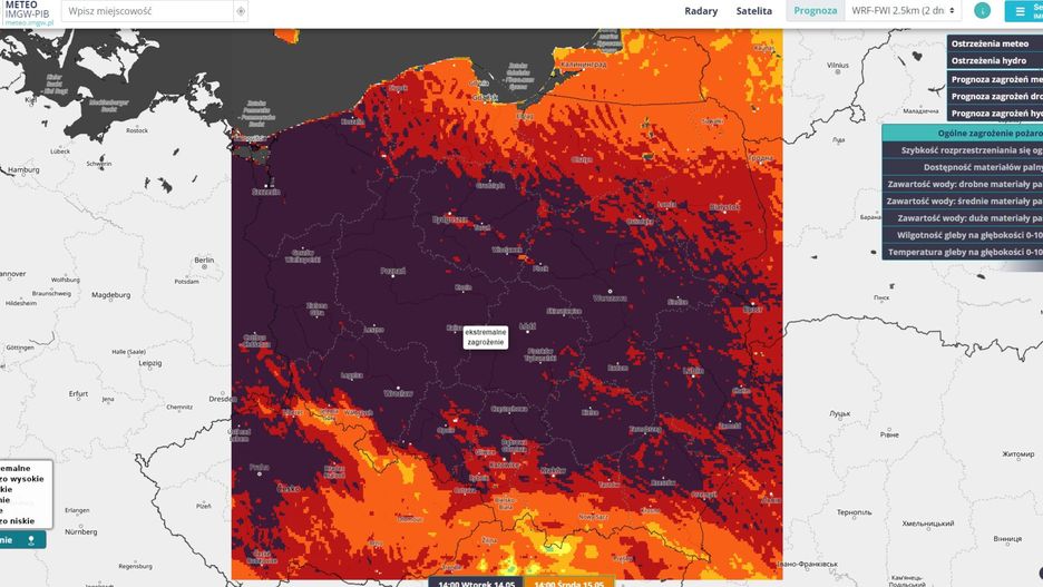 Opublikowane przez instytut mapy wyraźnie wskazują na pogarszający się stan i spadającą wilgotność leśnej ściółki. Tym samym sprawdzają się prognozy ekspertów.