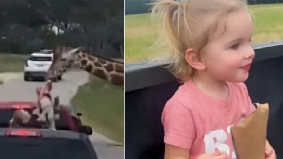 Karmienie żyrafy w centrum dzikiej przyrody w Teksasie stało się niebezpieczne, gdy jedno ze zwierząt podniosło małe dziecko z tylnej kanapy samochodu, którym jechała.