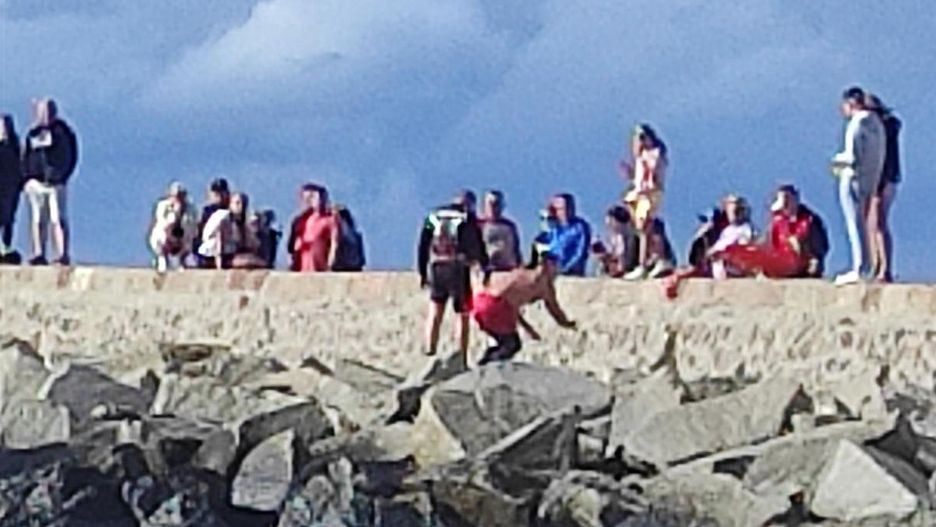 Używając bojek wodnych na linkach, ratownicy rzucili się w morze, by pomóc poszkodowanym. Skuter zatrzymał się na falochronie, a podróżujący maszyną z pomocą ratowników weszli na szczyt konstrukcji i w ten sposób opuścili miejsce zdarzenia.