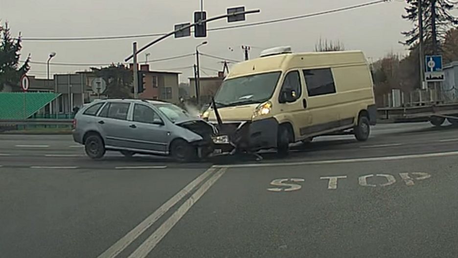 W wyniku niebezpiecznie wyglądającego zderzenia poszkodowana została jedna osoba. Wiadomo już, że to kierowca skody był sprawcą wypadku. Mężczyzna zignorował czerwone światło, które wyświetlał sygnalizator. Po przejechaniu uderzył w prawidłowo jadący pojazd dostawczy. Siła uderzenia była tak duża, że z obu aut odpadło wiele elementów.