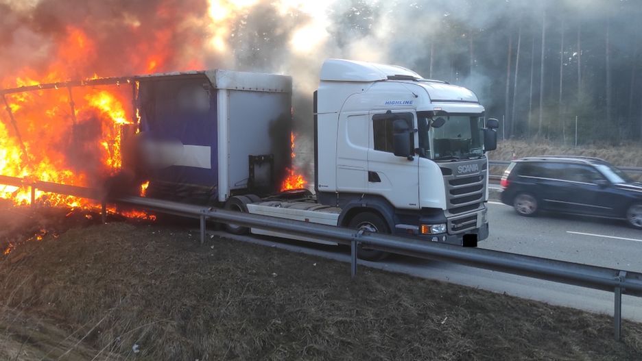 Ciężarówka stanęła w płomieniach. To zrobił policjant