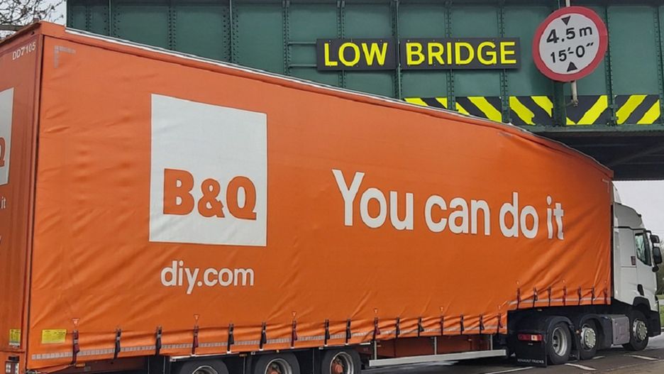 Ciężarówka brytyjskiego sklepu B&Q utknęła pod wiaduktem w Oxfordshire. Kierowca, chociaż na plandece miał nadrukowane "You can do it", nie dał rady wyjechać spod niskiego mostu.