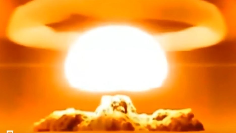 Przerażająca sekwencja pokazuje kilka wybuchów nuklearnych i ich następstwa, a następnie prezenter programu mówi do kamery, stojąc obok rzędu starych masek przeciwgazowych - opisuje program "The Mirror".