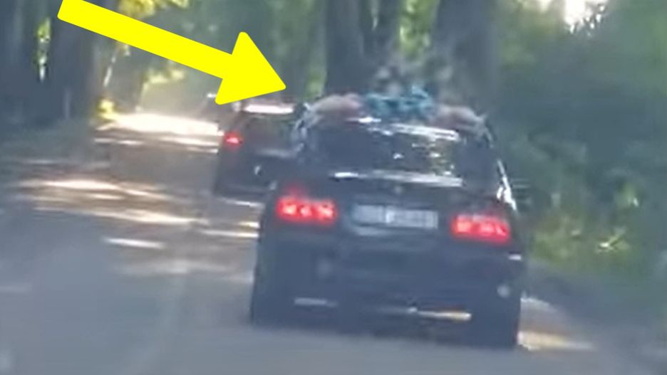 Na opublikowanym w sieci nagraniu widzimy, jak pasażer bmw wychodzi przez okno rozpędzonego samochodu. Młody mężczyzna wdrapuje się na dach auta, po czym zaczyna się rozbierać. W momencie auto jechało z prędkością 80 km/h.