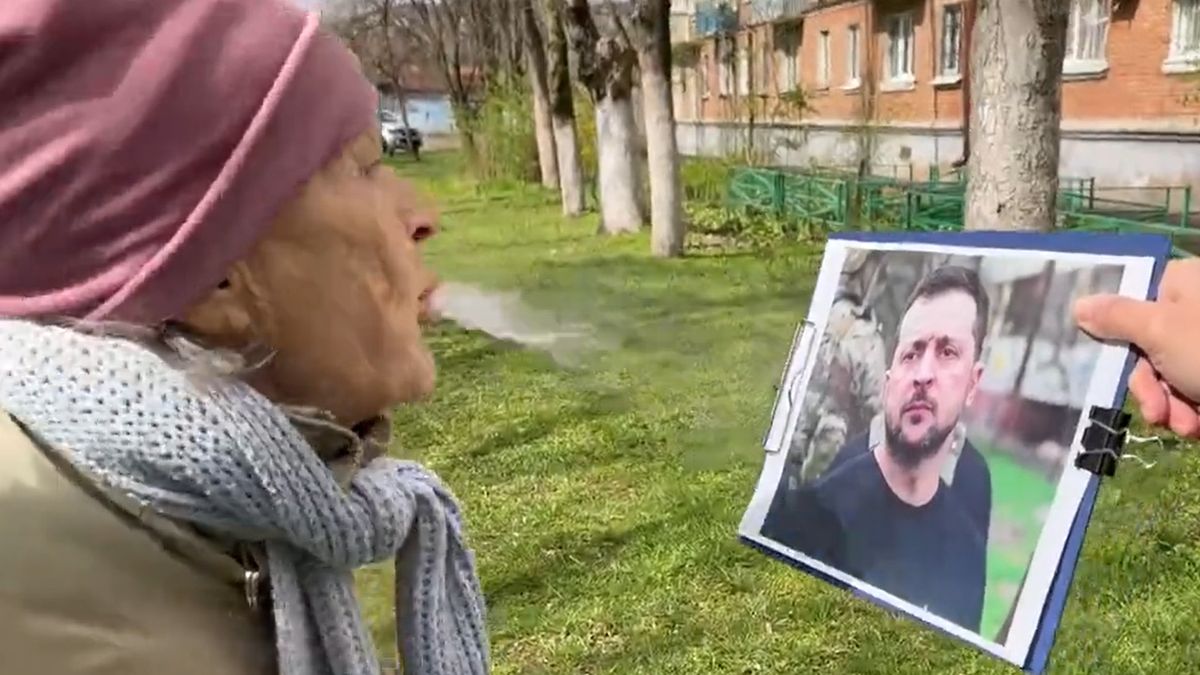 Dzisiaj zobaczymy przyszłość pewnego człowieka. Potrzebuję do tego asystenta i biały proszek, więcej proszku, więcej proszku. (...) Zaraz się dowiemy, co ukrywa ten szumowina - mówi seniorka, trzymając wydrukowane zdjęcie Zełenskiego.