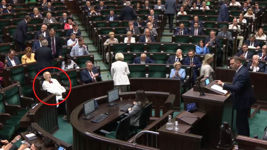 Gdy Przemysław Czarnek odbywał swój emocjonalny wywód, Janusz Korwin-Mikke (partia Konfederacja Wolność i Niepodległość) wygodnie rozłożył się w fotelu i wyglądał tak, jakby spał. Najwidoczniej przemówienie ministra zbytnio go nie poruszyło.