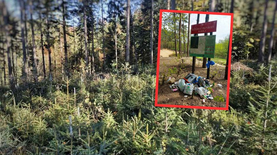 Nadleśnictwo Skierniewice opublikowało w mediach społecznościowych poruszające zdjęcie wykonane przez jednego z użytkowników w rezerwacie przyrody "Rawka". Fotografia ukazuje sterty śmieci – karton po grillu, puszki po piwie, butelki, plastikowe opakowania i zużyte chusteczki – porzucone w samym sercu lasu.