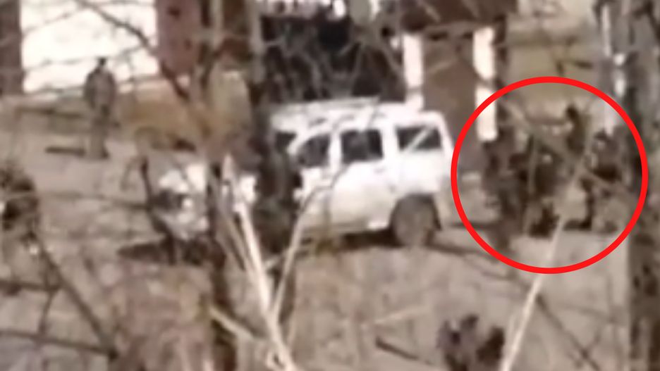 W tle słychać krzyki. Nieznany mężczyzna, wyraźnie poruszony, orientuje się, że to nie Rosjanie schwytali cywili, ale właśnie oddziały Kadyrowa.