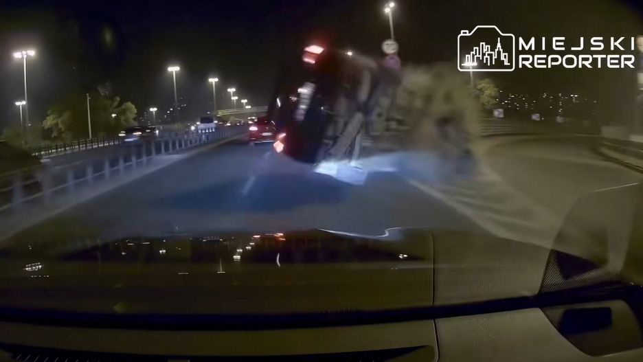 Niebezpieczne zdarzenie na Moście Grota-Roweckiego w Warszawie. Nagranie opublikowane na profilu "Miejski Reporter" pokazuje, jak kierowca opla jechał najpierw pasem do zjazdu, po czym nieoczekiwanie zmienił zdanie, a zmiana pasa skończyła się uderzeniem w bariery ochronne. Auto dachowało. Oto, jak zachował się kierowca.