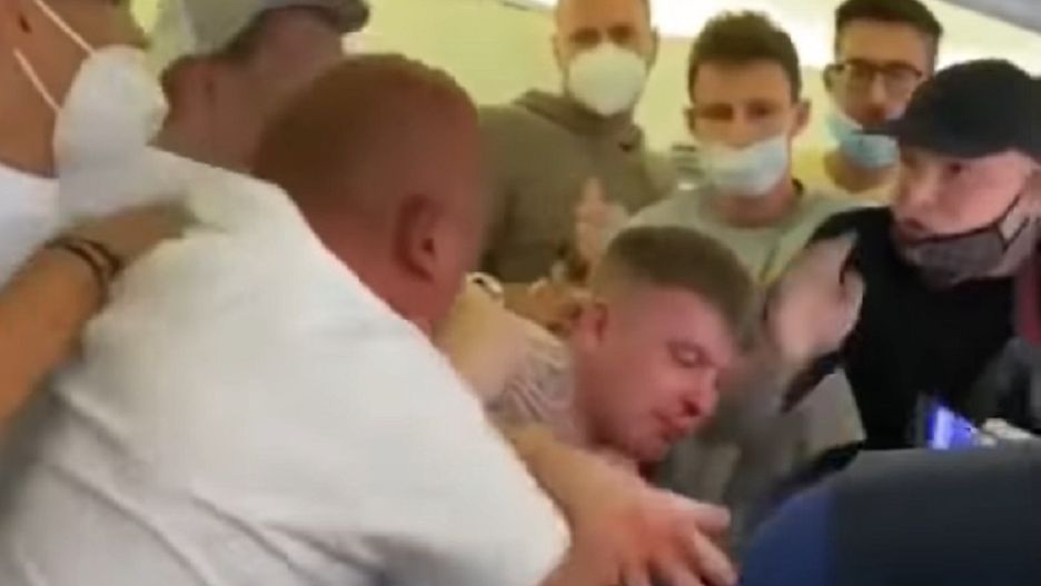Fight kicks off at Ibiza-Amsterdam flight as passengers refuse to wear a mask. Airplane fight. KLM 😷