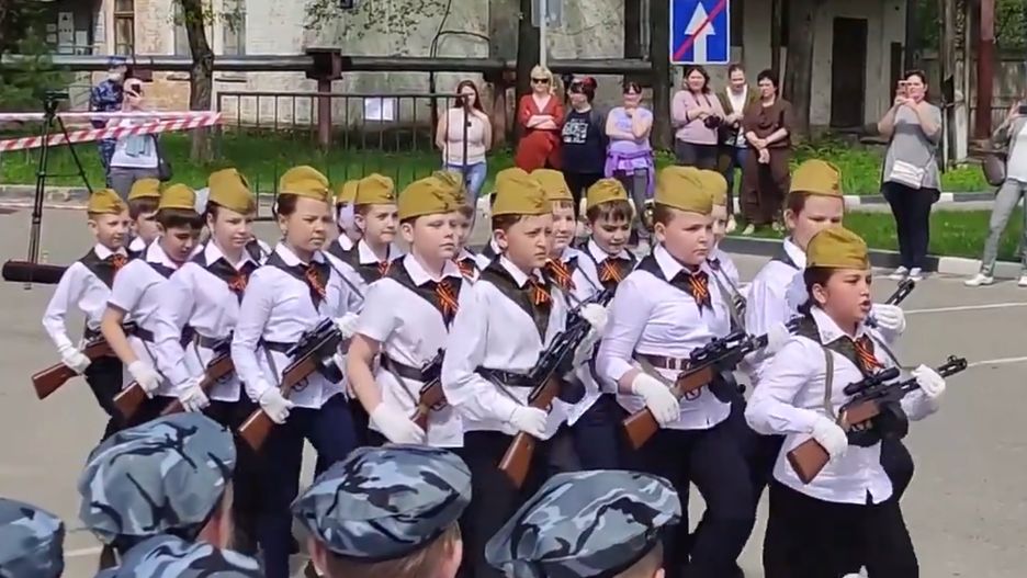 Na uroczystości z okazji obchodzonego 9 maja Dnia Zwycięstwa uczniowie defilowali z zabawkowymi karabinami maszynowymi w rękach, skandując: "jesteśmy Rosjanami i z nami jest Bóg!" - podało w sobotę radio Echo Moskwy.