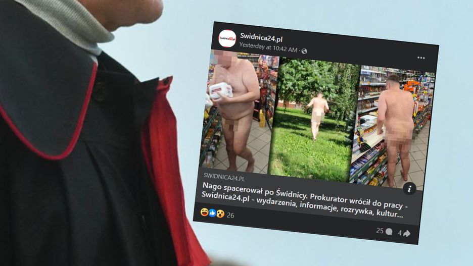 Prokurator, który został w 2021 roku zawieszony za spacerowanie nago po Świdnicy, wraca do pracy. Prokuratura Krajowa informuje, że "obwiniony nie popełnił deliktu dyscyplinarnego z uwagi na niepoczytalność".