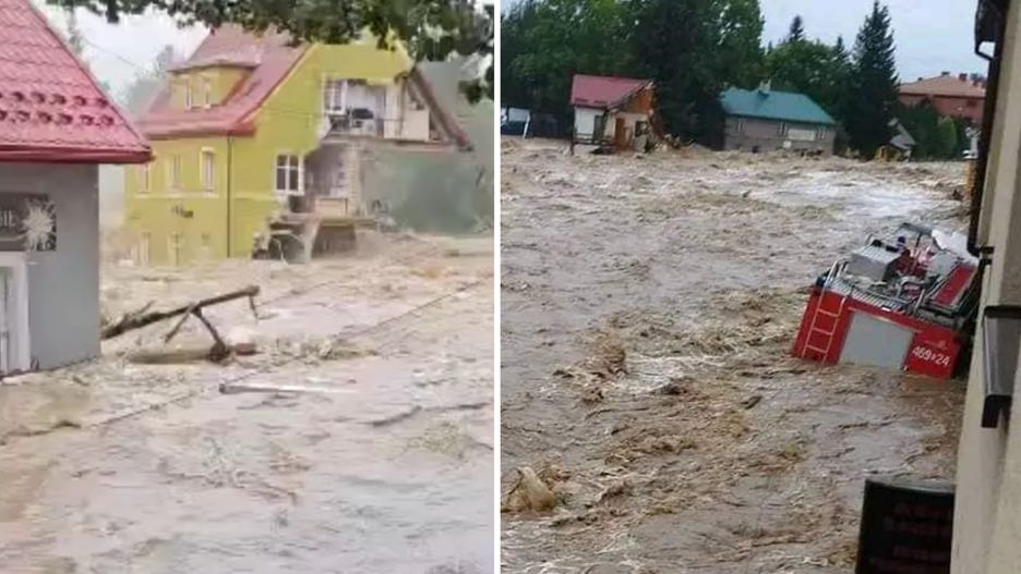 Opublikowane w mediach zdjęcia i nagrania pokazują dramatyczną skalę sytuacji – woda wdziera się z ogromną siłą, niszcząc wszystko, co napotyka na swojej drodze. Fala powodziowa porusza się z takim impetem, że unosi obiekty infrastruktury i samochody.