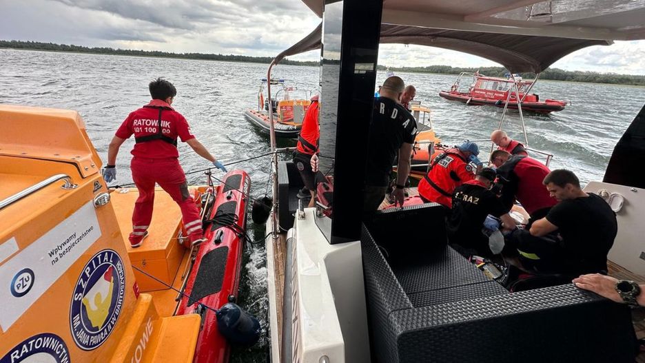 U poszkodowanego mężczyzny doszło do zatrzymania krążenia, nasi ratownicy razem ze strażakami prowadzili resuscytację do czasu przybycia wodnej karetki, a później pomogli w przetransportowaniu na brzeg, gdzie lądował śmigłowiec Lotniczego Pogotowia Ratunkowego - podaje Mazurskie Ochotnicze Pogotowie Ratunkowe.