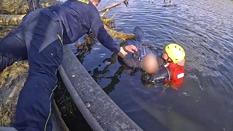 Nadal jednak nie było siły wydobyć go na brzeg, a woda miała temperaturę kilku stopni. Dopiero po chwili, z przeciwnej strony kanału, podpłynął nurek ze straży pożarnej, dzięki pomocy któremu udało się wciągnąć 69-latka na brzeg.