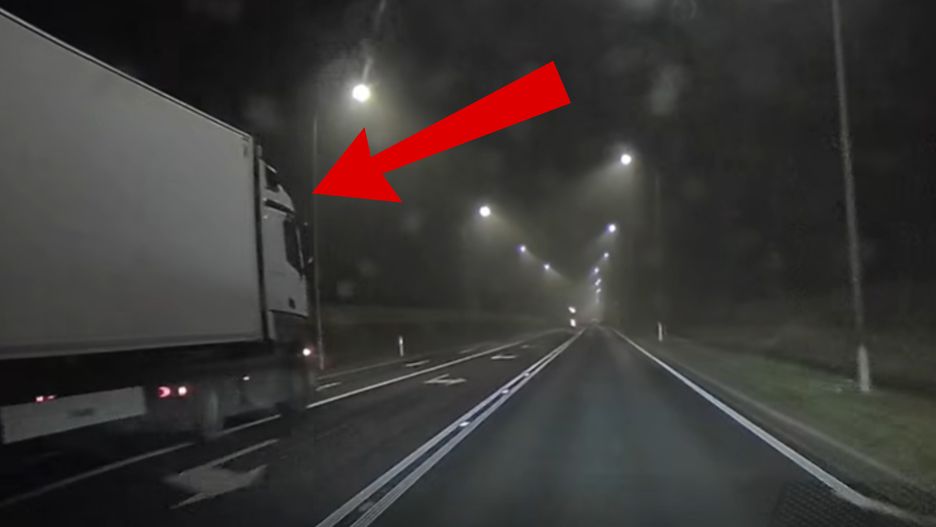 Zwalniałem przed przejściem dla pieszych i ograniczeniem prędkości, kiedy dostałem "długimi" światłami z tyłu. Moja "wolna jazda" nie spodobała się kierowcy ciężarówki, który postanowił mnie wyprzedzić - przekazał autor nagrania.