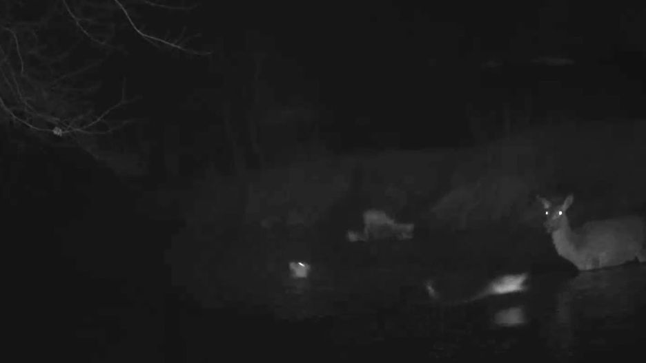 Tak też było na nagraniu z fotopułapki z Nadleśnictwa Rudy Raciborskie. Widać na nim, jak dwa małe kundelki szczekają i próbują zaatakować łanię jelenia. Pomimo że samica stoi w wodzie, to jednak psy do niej podpłynęły.