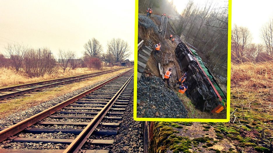 Pociąg jechał z prędkością 40 km/h. Nagle osunął się nasyp kolejowy. Ranny został pracownik obsługi kolei – napisano.