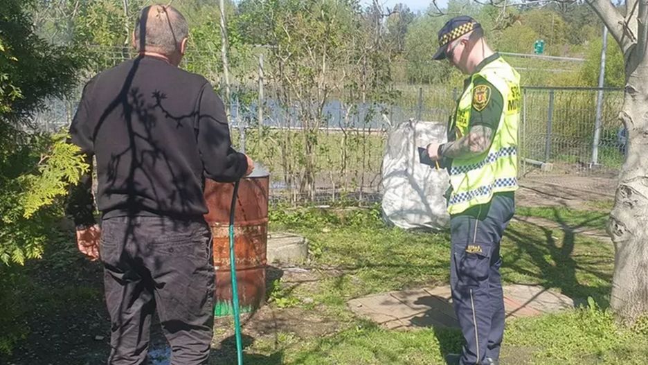 W powietrzu wyczuwalny był charakterystyczny, duszący zapach palonego plastiku. Niedługo potem funkcjonariusze zlokalizowali źródło ognia. Na jednej z działek stała metalowa beczka, w której palił się ogień. Obok niej stał około 60-letni mężczyzna i wrzucał do środka plastikowe butelki.