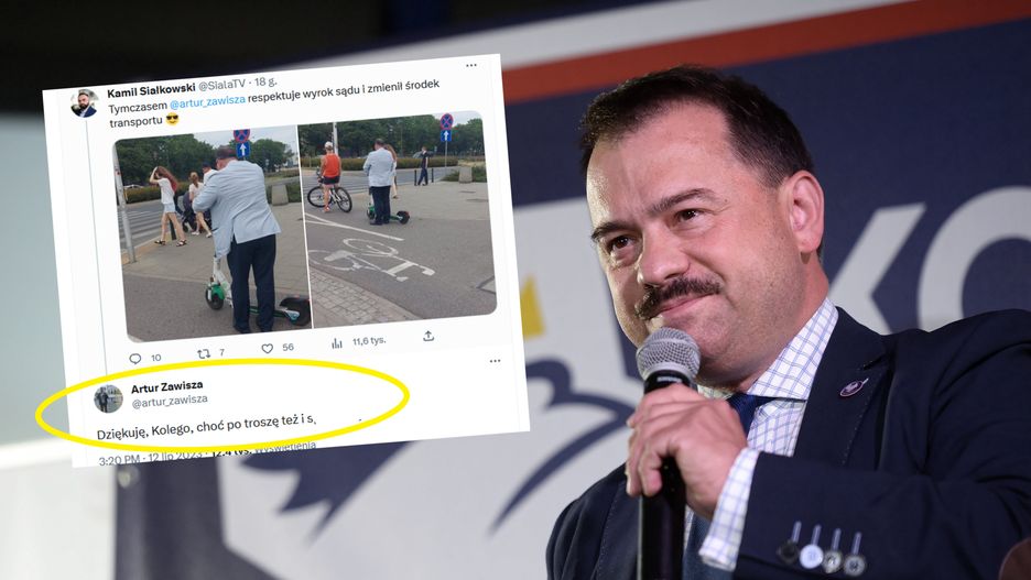 "Tymczasem Artur Zawisza respektuje wyrok sądu i zmienił środek transportu" - napisał pod zdjęciami byłego posła dziennikarz Gazeta.pl Kamil Siałkowski.- odpowiedział Zawisza.