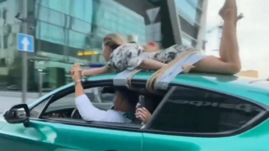 Dziewczyna przywiązana do dachu bentleya. Bloger tym razem przesadził