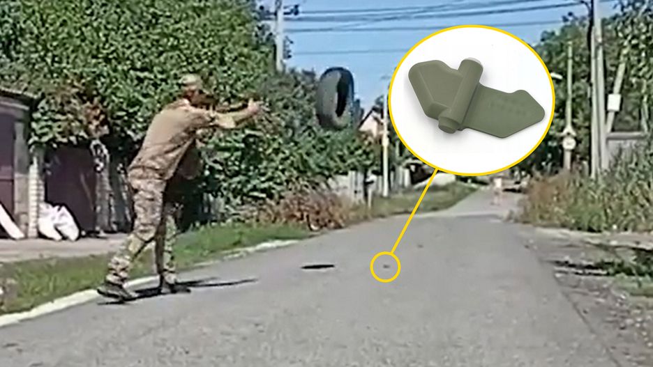 Kiedy spadła na niego opona, przedmiot eksplodował z głośnym hukiem, co pokazało, że na jezdni leżała mina. Biorąc to pod uwagę, można dziwić się rosyjskiemu żołnierzowi, który stał zaledwie półtora metra dalej, a po rzuceniu opony tylko obrócił się na pięcie i zasłonił uszy rękami.